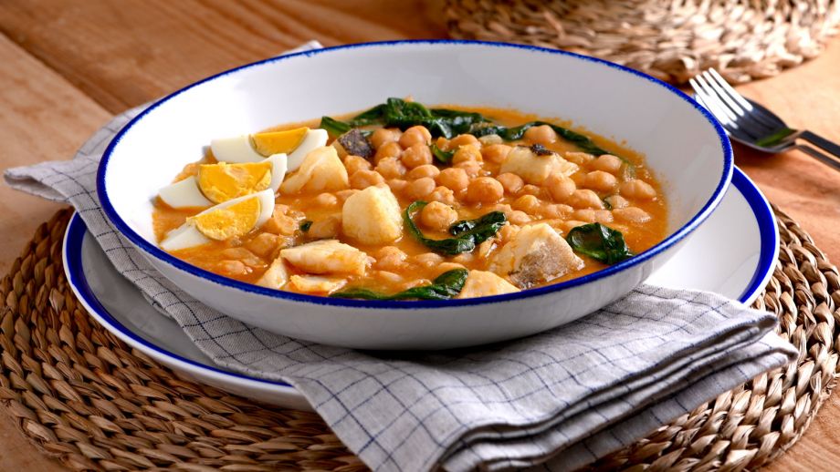 Potaje de Vigilia: un guiso reconfortante que combina garbanzos, espinacas y bacalao, ideal para los días más frescos de la temporada.